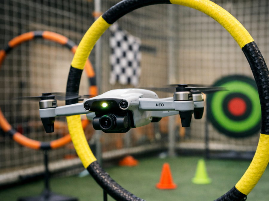 Apprendre à piloter un drone en espace ouvert à travers un parcours avec cibles, avec ou sans immersion FPV, tout en gérant l’environnement réel.